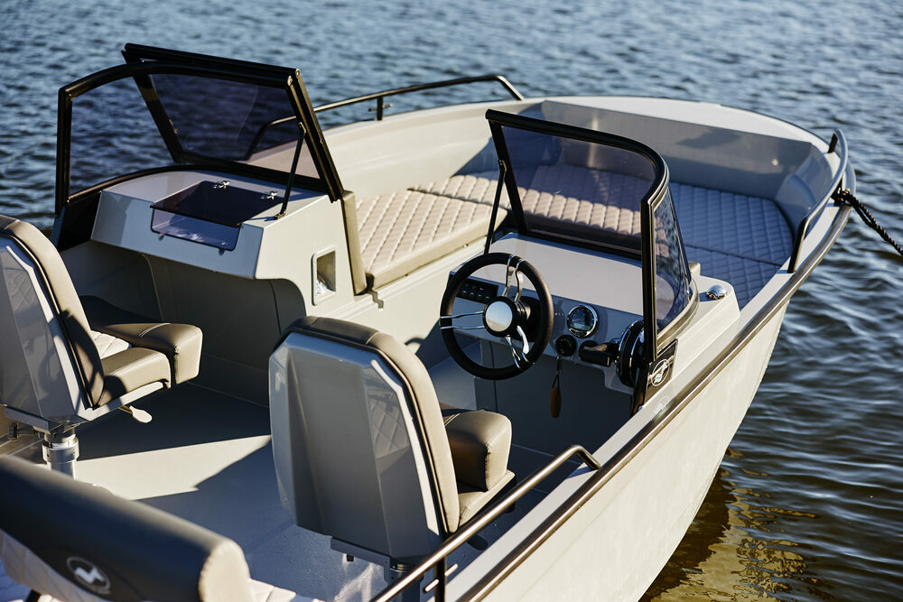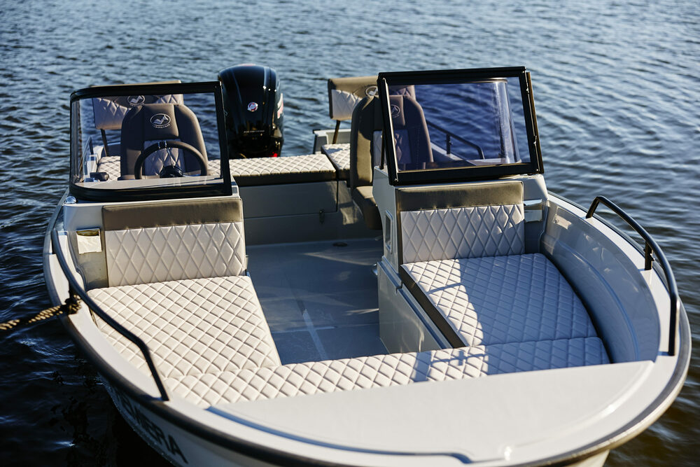 - Priekšgala deadrise (~28°) – mīksta gaita viļņos un drošība pat mainīgos laikapstākļos.